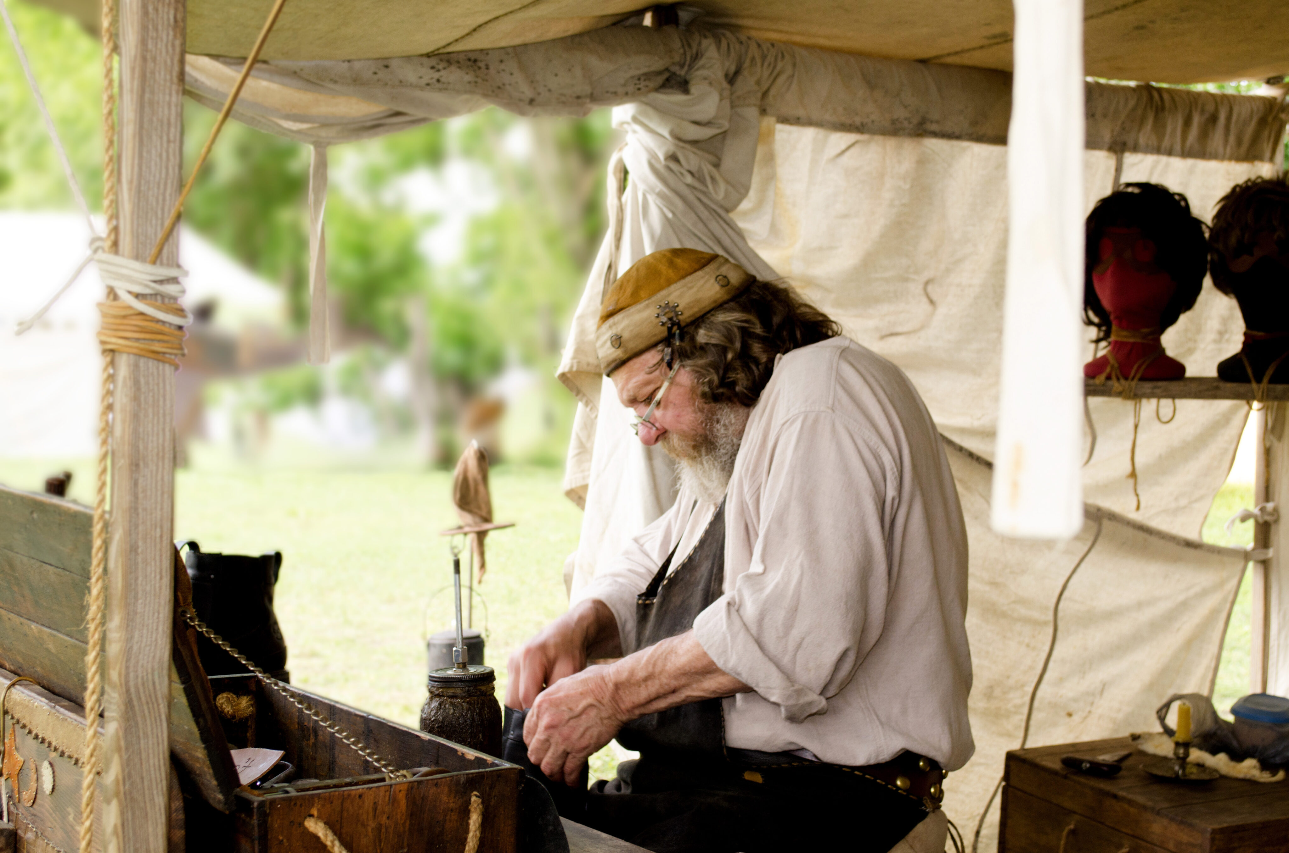 Vendor booths will give demonstrations of early frontier skills and offer period wares for sale, such as pottery, leather goods, wooden toys, pewter, herbs, wood bowls, baskets, iron works, period clothing, and more.